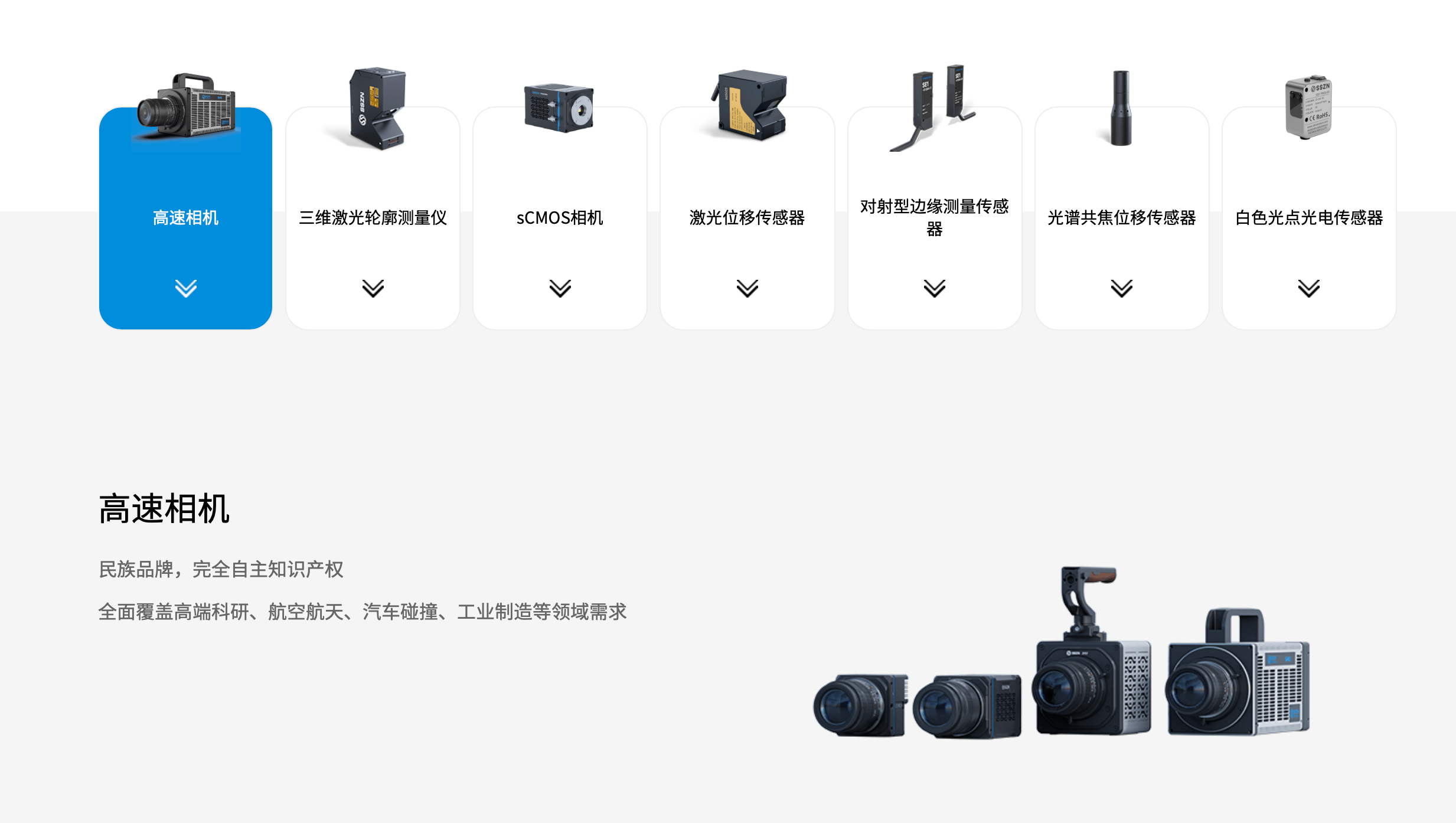 成立之初,深视智能以工业传感器为切入点,相继推出了线激光三维轮廓测量仪、激光位移传感器▲、光谱共焦位移传感器★、对射型边缘测量传感器;2022年■,深视智能入局科研、国防市场,推出了高速相机▽、纠偏传感器、颜色传感器及sCMOS相机等高端产品线,已广泛应用于消费电子、锂电、半导体▷▷●、光伏•●◇、航天航空★◇▽、弱光探测等领域。