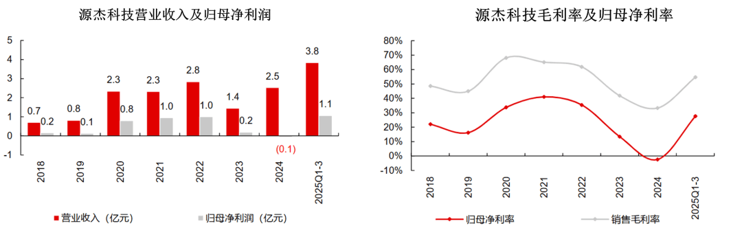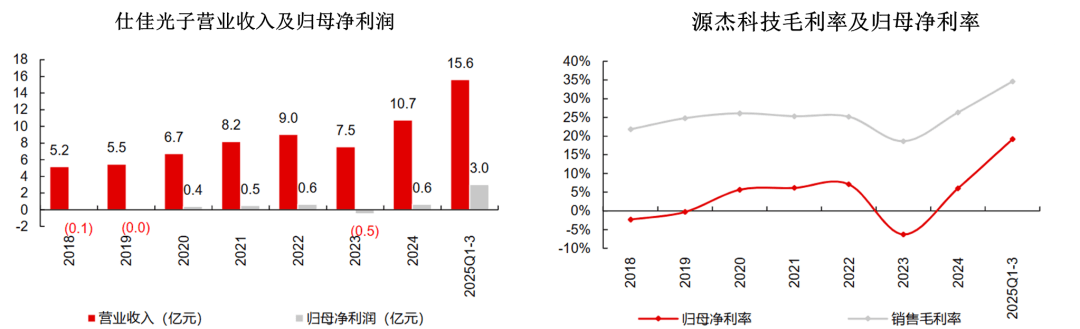2023 年起公司增长重心转向数通市场,产品线扩展至大功率 CW 光源,2025 年前三季度营收达 3.8 亿元,同比增速逾 115%,归母净利润 1.1 亿元,实现扭亏为盈。